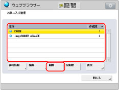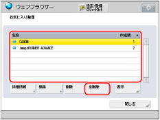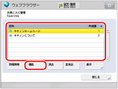 お気に入りのリストは[名称]や[作成順]を押して、昇降順に並びかえることができます。