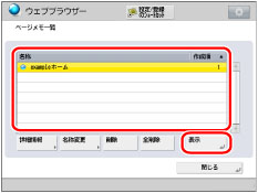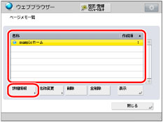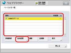 名称、URLを変更できます。URLを変更した場合も、保存される画面の内容は変わりません。現在表示している画面がページメモとして保存されます。
