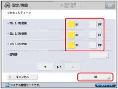 「SSL 2.0を使用」「SSL 3.0を使用」「TLS 1.0を使用」をすべて「OFF」に設定したときは、SSLを使用することはできません。