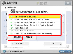 目的の証明書を選択→[有効/無効]を押す