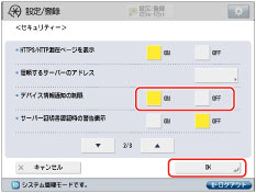 <デバイス情報通知の制限>の[ON]を選択→[OK]を押す