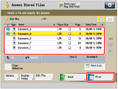 You can only select multiple files when the files are stored in the same mail box. To print multiple files stored in different mail boxes, you need to move the files to one mail box beforehand. (See "Moving/Duplicating a File.")