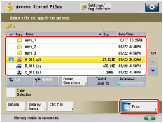 (Main Menu) →[Access Stored Files] → [Memory Media].