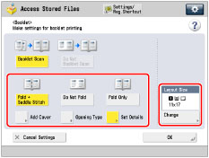 The Saddle Stitch and Divided Booklet modes can be set only if the Saddle Finisher-AM2/Booklet Finisher-T1 is attached.