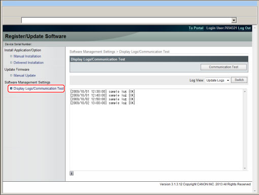 Press [Software Management Settings] → [Select Log Display] → [Display Update Logs].