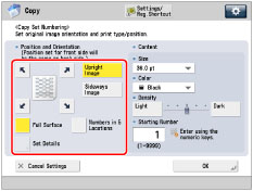 If you set [Number Option] to 'On', [Full Surface] and [Numbers in 5 Locations] is grayed out and cannot be selected. (See "Copy Set Numbering Options.")