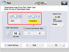 To specify the same settings as <Front Side> for <Back Side>, press [Same as Front Side].