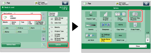 If you send different sized originals, the paper size used to output the faxes on the recipient's machine is the size of the largest document you sent. For example, if you send an LTR and 11" x 17" original, they will both be output on 11" x 17" paper at the recipient's machine.