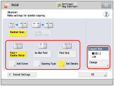 The Saddle Stitch and Divided Booklet modes can be set only if the Saddle Finisher-AM2/Staple Finisher-T1 is attached.