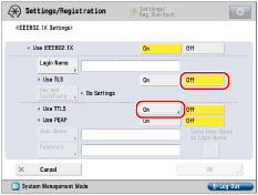 Press [Off] if you do not want to use IEEE 802.1X authentication.