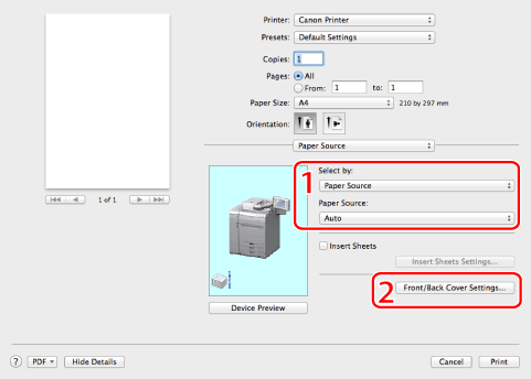 When you want to print on a specific type of paper, specify the paper source containing the paper, or the paper type.