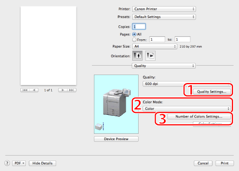 If you are using Mac OS X 10.7 or later, clicking [Show Details]/[Hide Details] at the bottom of the screen enables you to display or hide options.