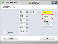 (Main Menu) → [Scan and Send] → press the scan size button.