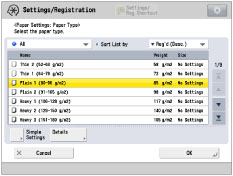 You can register paper types if paper types for the loaded paper are not displayed on the detailed setting list. For instructions on registering paper types, see "Overview of This Function."