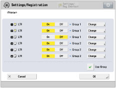 If you set to ‘On’, paper sources are set as a group. When the paper source specified in the printer driver runs out of paper during printing, the machine automatically selects another paper source in the same group, and continues printing.