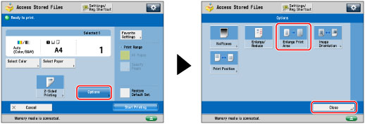 Press [Options] → [Enlarge Print Area] → [Close].