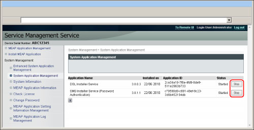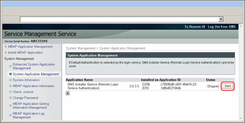 If you logged in using the user name and password for the machine: You can start/stop the SMS password login service (Password Authentication).