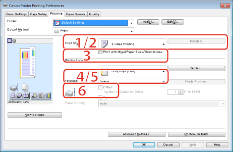 For instructions on how to display the printer driver screen, see "Printing" or "Configuring the Default Print Settings."