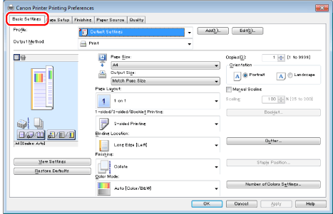 For instructions on how to display the printer driver screen, see "Printing" or "Configuring the Default Print Settings."