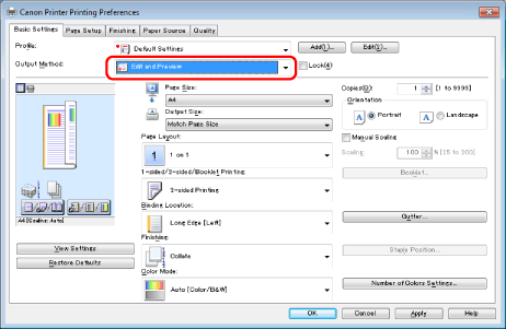 Select [Edit and Preview] from [Output Method].