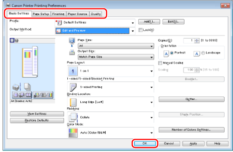 For details about the Canon PageComposer settings, see the Canon PageComposer Help.