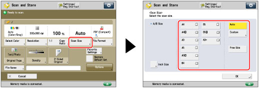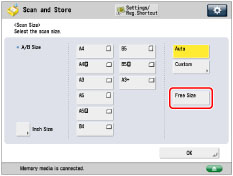 You can manually specify a scan size when scanning originals that cannot be detected using [Auto]. You can also register the specified scan size.