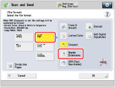 If [Format PDF to PDF/A] is set to 'On' (See "Formatting PDF Files to PDF/A.")