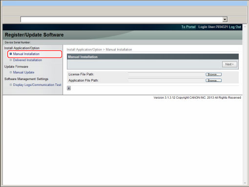 Obtain a license file if you want to install a system option/MEAP application using the Remote UI.