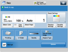 You can perform the same operations on both the Regular Copy Basic Features screen and the Express Copy Basic Features screen. Set which screen to display from the Settings/Registration screen. (See "Switching the Copy Basic Features Screen.")