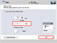 Check that the number of tabs on the tab paper displayed on the touch panel display is the same as the number of tabs on the tab paper loaded in the paper source.