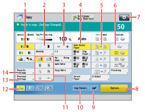 Press to register frequently used copy settings. You can also recall registered copy settings.