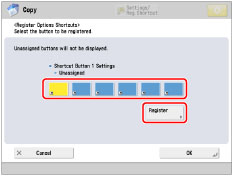Setting Shortcuts on the Express Copy Basic Features Screen