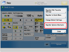 You can create shortcuts to frequently used functions in [Options]. These shortcuts then appear on the Express Copy Basic Features screen.