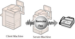 The explanations of procedures in this category assume that the imageRUNNER ADVANCE series (Remote Fax server machine) with Super G3 FAX Board and Duplex Color Image Reader Unit-H1 is connected with this machine. However, some imageRUNNER ADVANCE series cannot be used as a remote fax server machine.