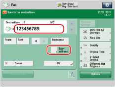 If the destination fax machine is compatible with ITU-T (International Telecommunications Union-Telecommunications Sector) standard subaddresses and passwords, you can send documents with increased security by attaching a subaddress and a password to all of your fax transactions.