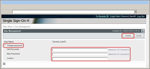 Select [Change Password] → enter the appropriate passwords → click [Update].
