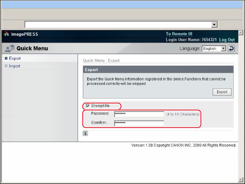 Do not turn the main power of the machine OFF while exporting/importing a Personal button/Shared button file, as doing so may cause the machine to malfunction.
