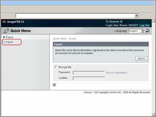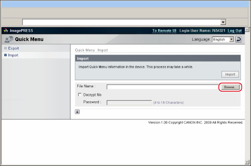 Do not turn the main power of the machine OFF while importing a Personal button/Shared button file, as doing so may cause the machine to malfunction.