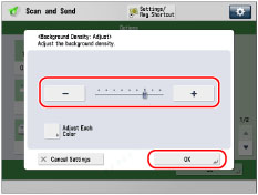 Press [-] and [+] to adjust the background density → press [OK].