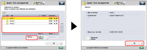 Sélectionner le dossier souhaité → appuyer sur [Détails] → [OK].