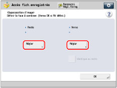Pour reproduire le réglage de <Recto> pour le <Verso>, appuyer sur [Identique au recto].