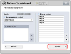 Microprogramme applicable : Affiche le nouveau microprogramme applicable sur cette machine.