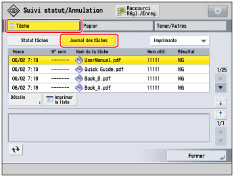 Si [Afficher le journal des tâches] est réglé de "Non" à "Oui" sous [Réglages de gestion] (Réglages/Enregistrement), les réglages suivants sont automatiquement réglés sur "Non" :