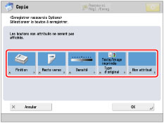 Il est possible de créer des raccourcis vers les fonctions les plus fréquemment utilisées sous [Options]. Les [Réglages favoris] peuvent être mémorisés dans des touches de raccourci. Pour plus d'informations sur les réglages favoris, voir