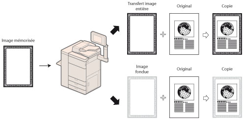 Pour utiliser le mode Superposition d'image, l'image mémorisée doit être enregistrée au préalable dans la machine. (Voir "Mémorisation d'images pour le mode Superposition d'image".)