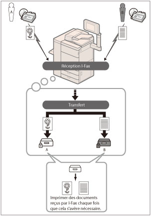 Si des fichiers d'image joints aux documents I-Fax reçus ne sont pas compatibles avec cette machine, celle-ci n'effectue pas les opérations prévues (impression, transfert ou mise en mémoire), et les fichiers sont supprimés. Dans ce cas, les noms des fichiers supprimés et le message <Aucun programme ne peut traiter ce fichier.> sont imprimés avec le texte du message de l'I-Fax reçu.