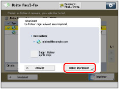 Seuls les fichiers mémorisés dont les réglages sont les mêmes que lors de la réception peuvent être imprimés.