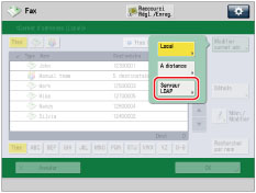 [Modifier carnet adr.] s'affiche uniquement lorsque le carnet d'adresses distant et le serveur LDAP sont enregistrés. Si seul le serveur LDAP est enregistré sur la machine, la mention [Vers Serv. LDAP] s'affiche.