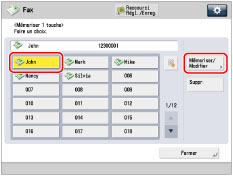 Les destinataires enregistrés au niveau des boutons de composition 1 touche sont également affichés dans le carnet d'adresses local.