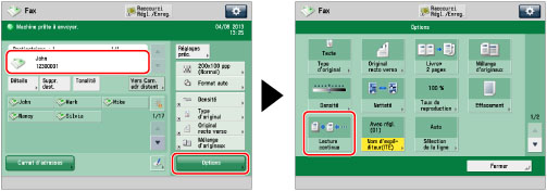 Le nombre maximal de pages pouvant être envoyées en une seule fois est de 999. En mode [Lecture continue], un message demandant si la tâche doit être envoyée s'affiche après la lecture des 999 premières pages. Si l'on décide d'envoyer la tâche, les 999 pages lues sont envoyées. Si la tâche est annulée, les pages lues ne sont pas envoyées.